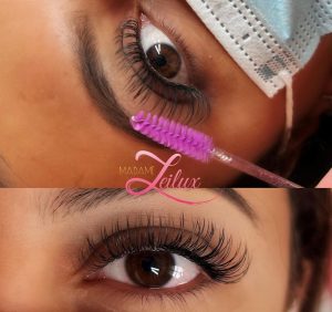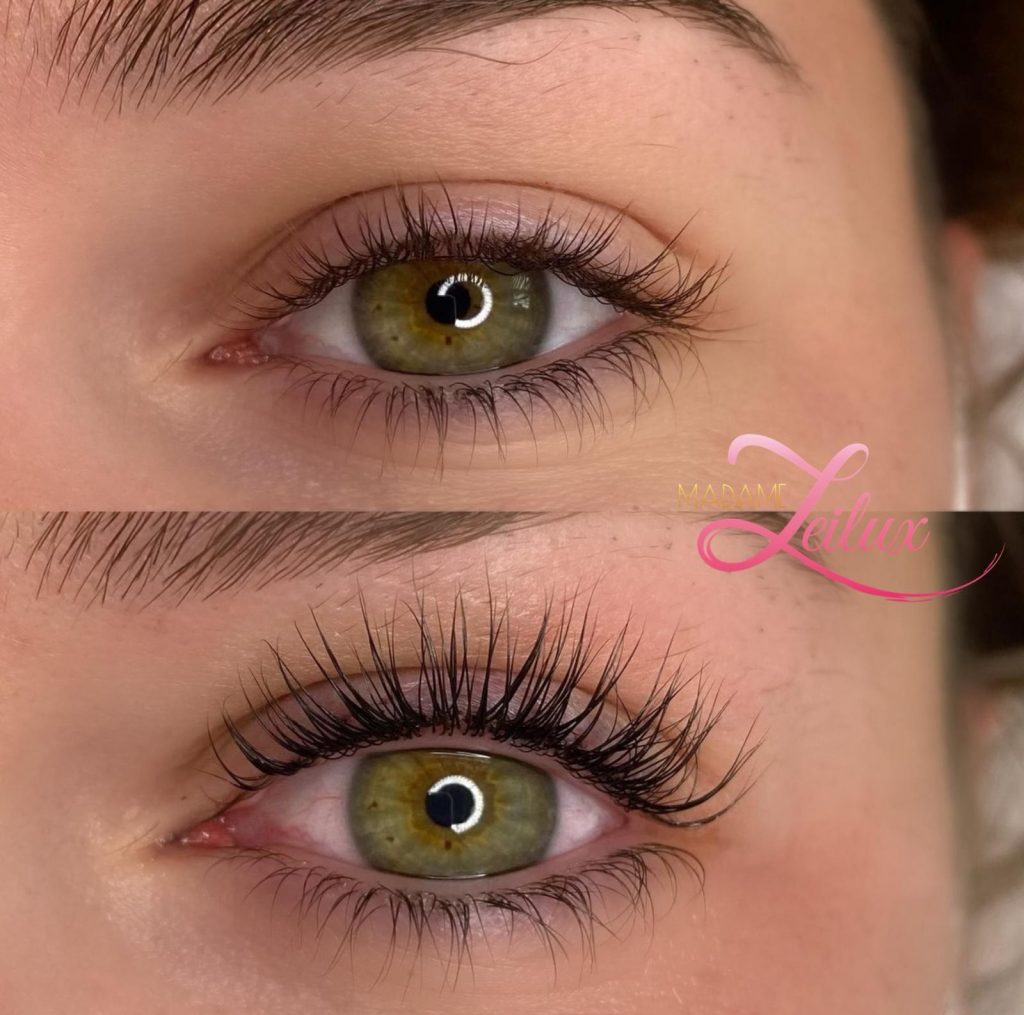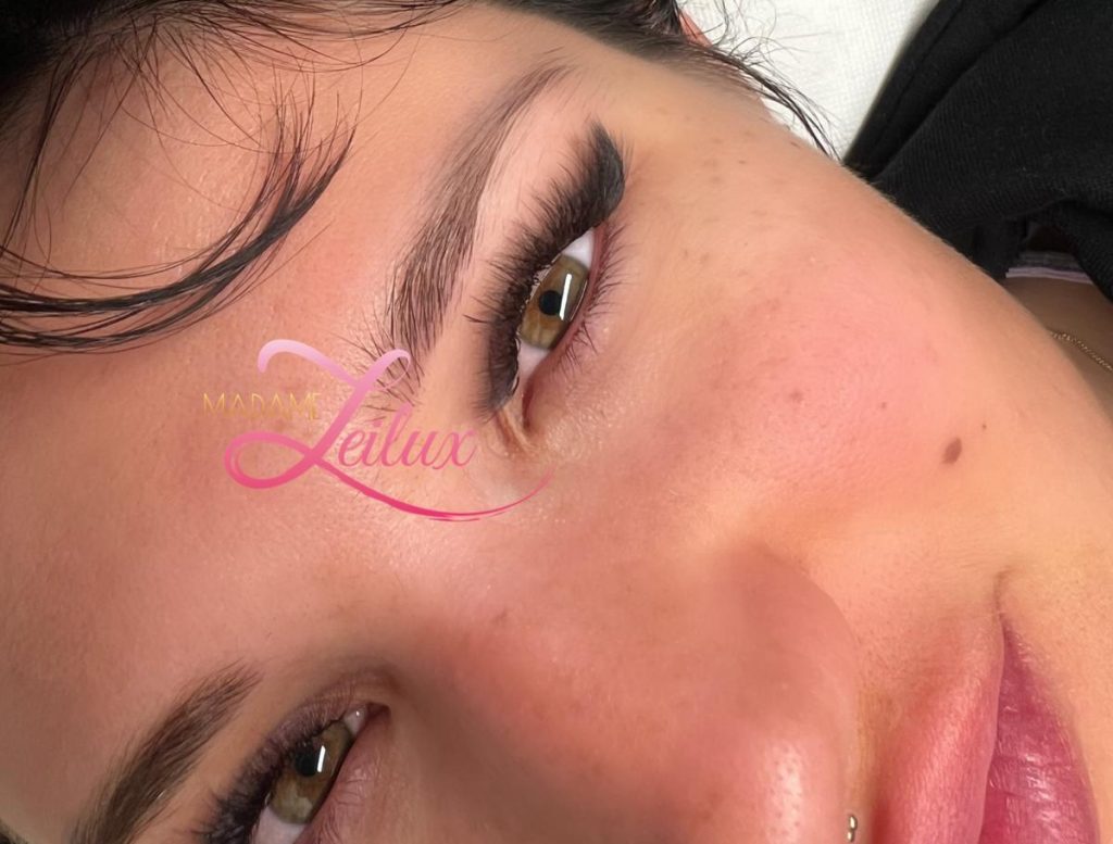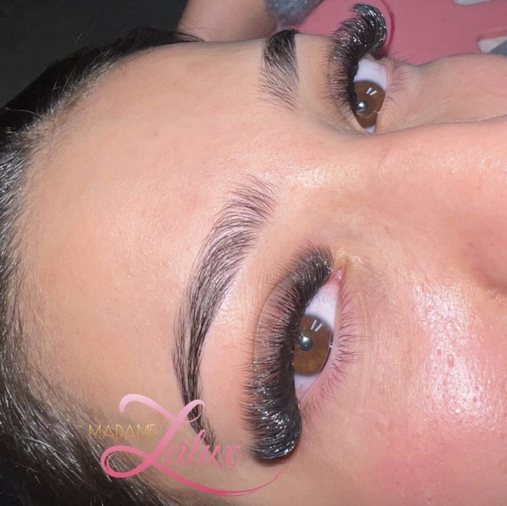 Similaire à la pose russe pour Madame Leilux : l’application exclusive de bouquets 8D 0.05 sur tous vos cils naturels, offrant un résultat d’une grande voluminosité.