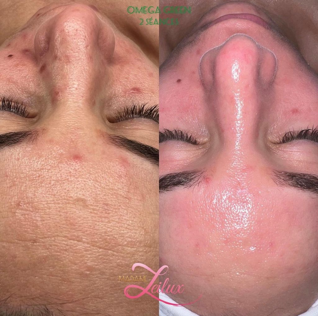 Grâce à la technique de l’Oméga Green, à la fois détoxifiante et apaisante, ce soin accélère le processus de guérison de l’acné grâce à un complexe de chlorophylle et à la chlorelle extraite d’algues qui vont venir tuer les bactéries d’acné. L’Oméga Green est associé au Microneedling, à la luminothérapie et à la cryothérapie pour des résultats optimaux.